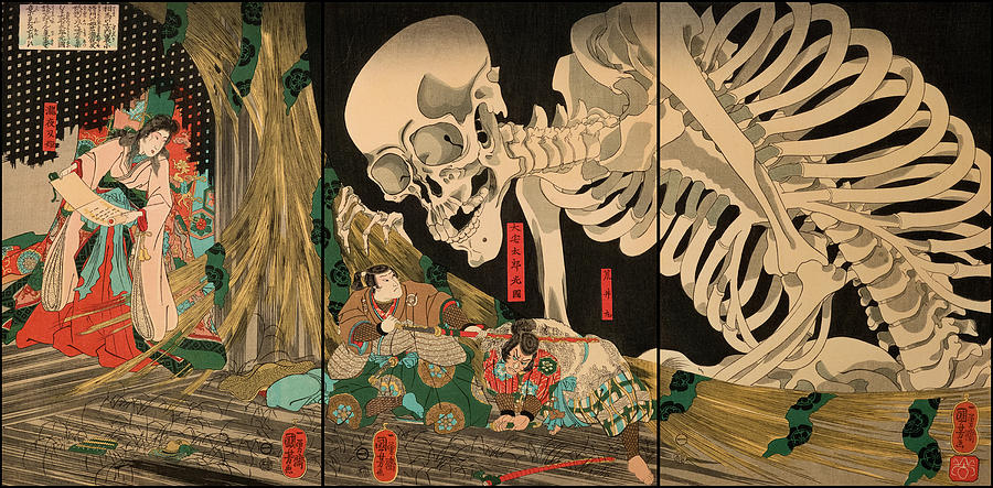 CK: Among your legions, it’s said you had an army of skeletons. But Utagawa Kuniyoshi’s famous painting of the final battle between you and Mitsukuni shows one giant skeleton.